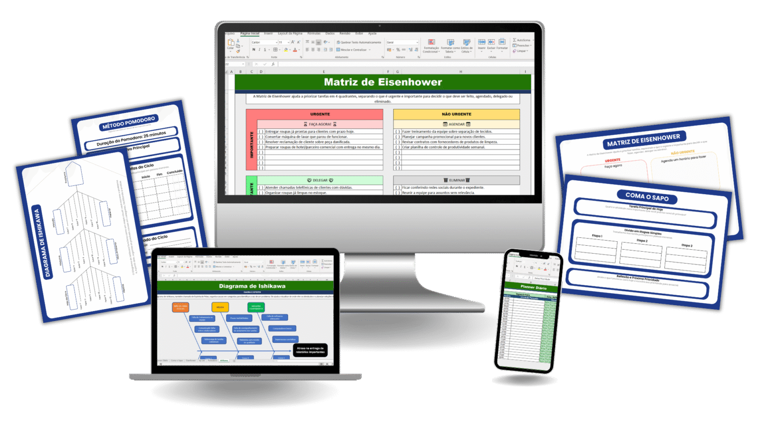 Acesse um kit completo de métodos de produtividade prontos e editáveis, sem precisar de nenhum conhecimento técnico.
