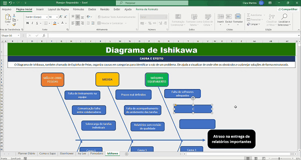 Visualize as causas de um problema e encontre soluções duradouras analisando cada fator de forma clara.